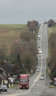 La R.N.2 arrive à Avesnes-sur-Helpe. Le clocher de la petite cité nous indique le chemin, comme dans les temps anciens (photo: Marc Verney,