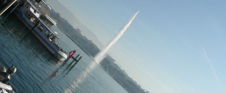 | Le lac Léman à Genève et le fameux jet... Sept tonnes d'eau lancées dans l'air (photo: MV, octobre 2010). |
