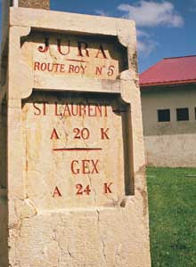 | Borne de la RN5 Paris-Genève au col de la Faucille (photo: MV). |