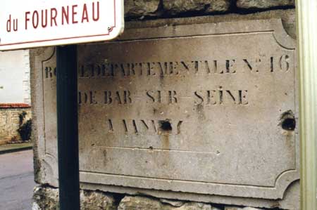 | Exceptionnelle plaque d'indications en pierre située dans le petit village de Belan-sur-Ource On peut y lire la mention: "route départementale n°16 de Bar-sur-Seine à Vanvey" (photo: