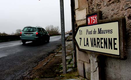 | La route n°751 de 1959 sur la levée de la Divatte, peu après Nantes (photo: Marc Verney, janvier 2013). En cliquant sur l'image, vous entamez la promenade sur la route. |