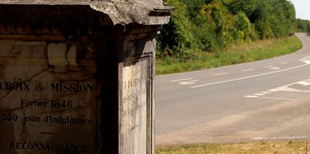 | Non loin du tracé de la R.N.464 historique, ce vieux Michelin des années trente indique Droitfontaine (photo: MV, août 2025). |
