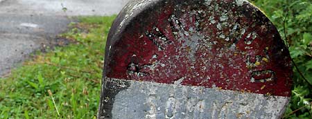 | A Carrépuis, on trouve cette ancienne borne kilométrique de la R.N.30 historique (photo: Marc Verney, septembre 2023). |