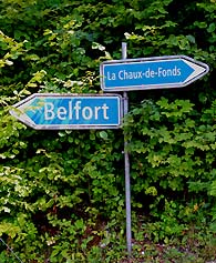 On prend la direction de Charquemont par la rue des Combes. Si la carte d’état-major du XIXe siècle (1820-1866) publiée sur internet par l’IGN ne montre que des chemins de terre dans la région, on apprend, en lisant le Bulletin officiel des délibérations du Grand conseil de la République et canton de Neuchâtel de 1877 que la route de Maîche à la Suisse «vient d'être déclarée d'utilité publique par le Conseil général du Doubs». Elle se dirigera «de Biaufond par la Cendrée à Charquemont et Maîche», «C'est de 1339 que date la plus ancienne mention connue de Charquemont, à l'occasion d'un traité de partage territorial», écrit le site racinescomtoises.net. On entre aujourd’hui dans ce village par les rues des Quatre-Vents et de Besançon. «Au XIVe siècle, lit-on sur le site charquemont.fr, le territoire où va se développer Charquemont est en cours de défrichement, particulièrement "les côtes" du Doubs au dessus du lieu-dit "la Mort". En face, sur la rive droite, les colons du prince-évêque de Bâle défrichaient également en aval de Biaufond, ce qui allait devenir le territoire des Franches-Montagnes». Au fil du temps, l'industrie horlogère prend une grande place, à côté de la production de fromage et des exploitations forestières: en 1869, «il y avait déjà à Charquemont 138 ateliers produisant des pièces d’horlogerie et employant près de 500 ouvriers», signale le site municipal. A la sortie du bourg, la R.N.464 historique prend la direction de Biaufond et de la Suisse par la Combe-Saint-Pierre et la Cendrée. On notera, écrit Wikisara que le tracé terminal de la petite nationale Besançon-la Suisse fut «détourné avant son déclassement entre Charquemont et la frontière pour desservir Fournet-Blancheroche». De nos jours, «le tracé originel semble ne plus être carrossable au-delà de la Cendrée», signale encore ce site. En bas, sur le Doubs, et à cheval sur la frontière franco-suisse, le pont métallique de Biaufond (1881) est plus vieux que la tour Eiffel! Côté suisse, lit-on dans le dossier Les chemins historiques du canton de Neuchâtel, «la route des Côtes du Doubs est la version la plus moderne d'un très ancien cheminement entre Neuchâtel et la rive française du Doubs, à Maîche. La "via de Maches", connue plus tard sous le nom de "chemin de Blancheroche" est citée en 1401. Malgré sa forte déclivité, le chemin est considéré comme carrossable au XVIIIe siècle». Mais cela n'est pas suffisant pour le trafic moderne... «Dès 1870, voit-on encore dans ce dossier de l'Inventaire des voies de communication historiques de la Suisse (IVS), on étudie un ambitieux projet pour une route internationale, avec une largeur de 5 mètres, une pente maximum de 9% et un pont sur le Doubs. Construite entre 1873 et 1893, cette route est, avec ces courbes audacieuses, ses tunnels et ses murs de soutènement, un exemple achevé de route d'ingénieur du XIXe siècle»... De Besançon à la Chaux-de-Fonds, nous aurons parcouru 105 kilomètres environ.