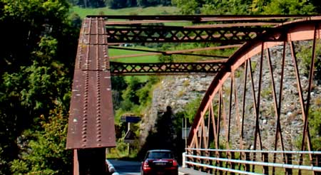 | Ici, le pont sur le Doubs (lac de Biaufond) date de 1881 et se trouve à cheval sur la frontière franco-suisse (photo: Marc Verney, août 2025). |