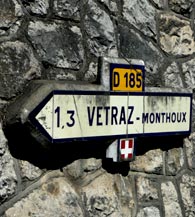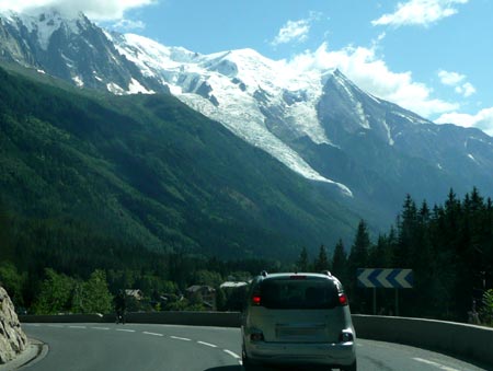 | Tout au long du chemin, les hôtels et restaurants s'affichent avec le Mont-Blanc (photo: MV, juillet 2012). |